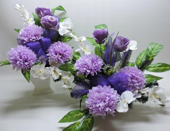 Kompozycja z kwiatów sztucznych komplet nagrobny wazon donica