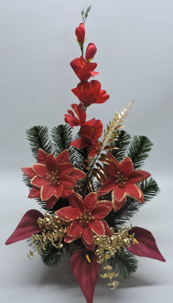Stroik jest wykonany na stabilnym podkładzie w formie plastikowego wkładu, który jest bezpieczny dla płyty nagrobka i stanowi dobrą bazę dla dekoracji Kompozycja na pomnik wykonany jest z przepięknych kwiatów, które wyglądają jak żywe! Wysoka jakość, piękny wygląd przez długi okres czasu. Zaletą kompozycji ze sztucznych kwiatów jest oszczędność czasu, gdyż nie musimy martwić się podlewaniem, przesadzaniem, czy wymianą wody, a zawsze pięknie i świeżo wyglądają!!!